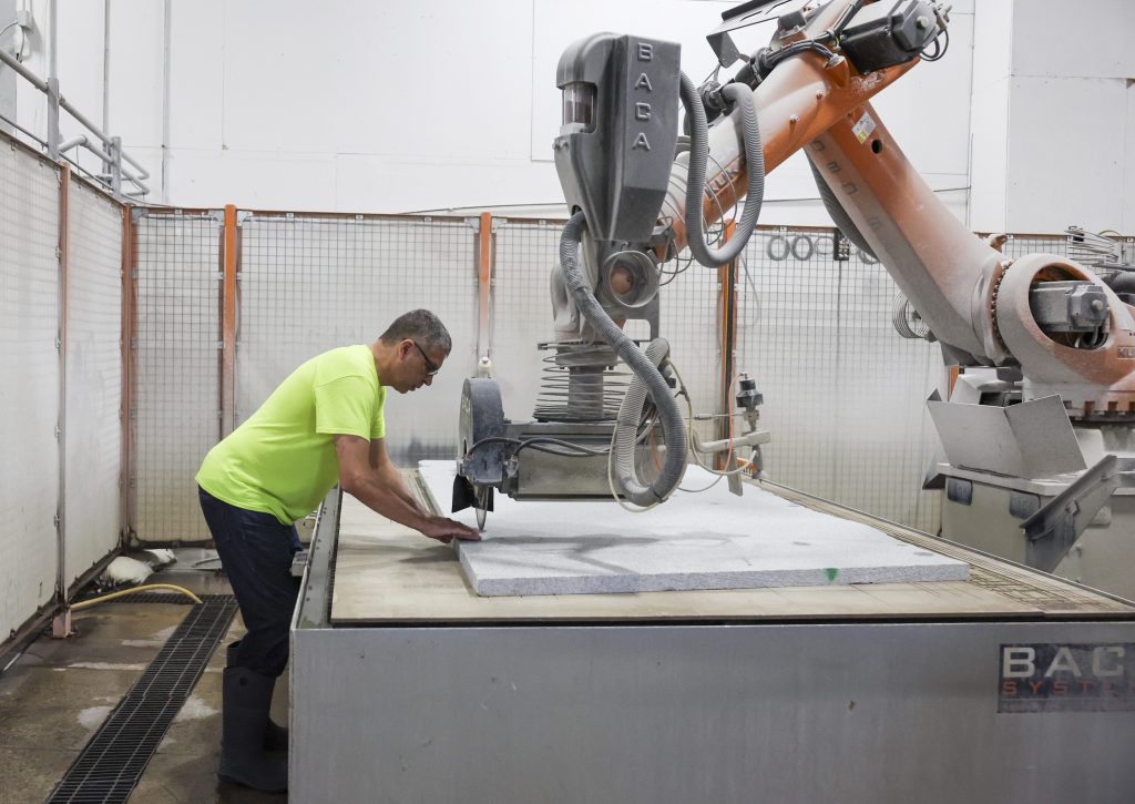 Dandamudi said she understands the desire to buy American, but sometimes it’s not possible. GI Stone’s highly skilled workforce transforms quarried and engineered stone into finished countertops, flooring, walls and staircases for high-end residences and other projects at its North Side manufacturing facility. American quarries produce high-quality stone, but not in the full range of colors demanded by U.S. apartment and condo dwellers, so the company relies on products from Canada, Italy, India and many other countries.