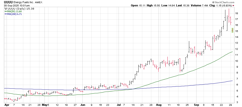 That demand helped push UUUU to recent highs of $17.50. Since then, shares have pulled back 20%, offering a clean technical setup for long-term investors.