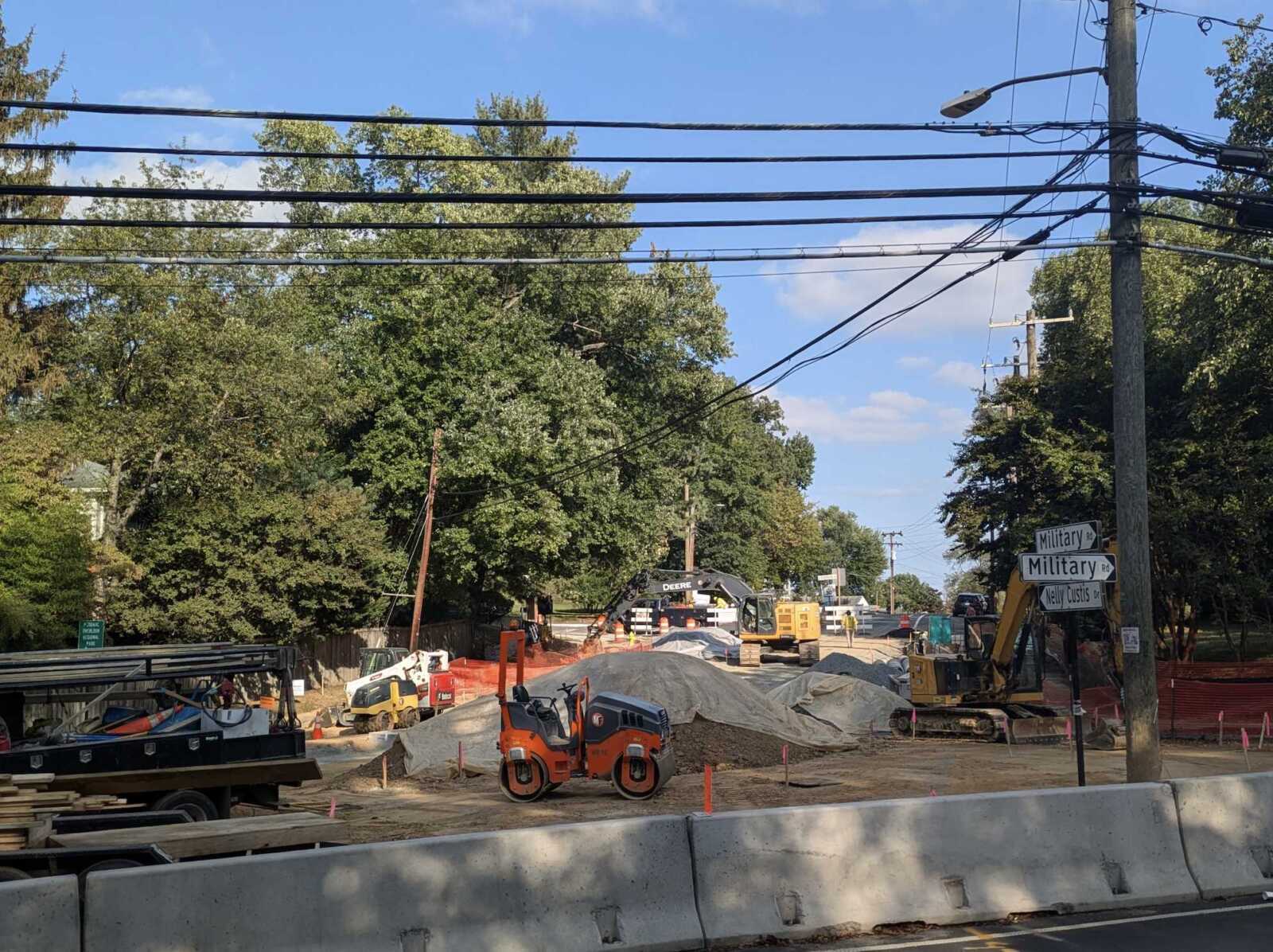 Sidewalk reconstruction is currently underway, closing a portion of Nelly Custis Drive. Road closures are expected to shift to Military Road at the south end of the project later this fall, county spokesperson Claudia Pors told ARLnow.