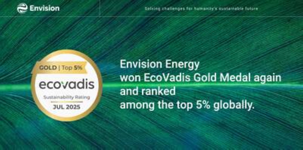 SHANGHAI, Sept. 25, 2025 /PRNewswire/ — Envision Energy, a global leader in green technology, has once again earned the EcoVadis Gold Rating. Among around 49,000 companies assessed worldwide this year, Envision ranked in the top 5% globally and the top 2% within its industry. This marks the second consecutive year Envision has achieved the Gold rating, reflecting company’s ongoing commitment and leadership in advancing the global sustainability.