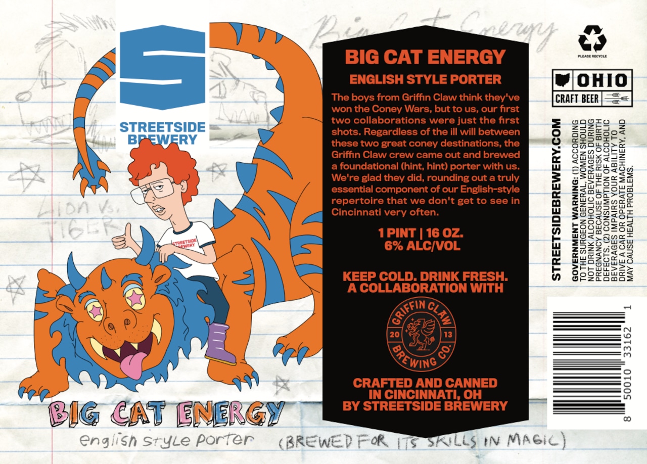 Big Cat Energy is a 6% ABV English-style porter.Streetside Brewery
